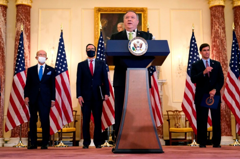 Ngoại trưởng Pompeo công bố tái áp đặt lệnh trừng phạt nhắm vào Iran. Ảnh: Getty Images