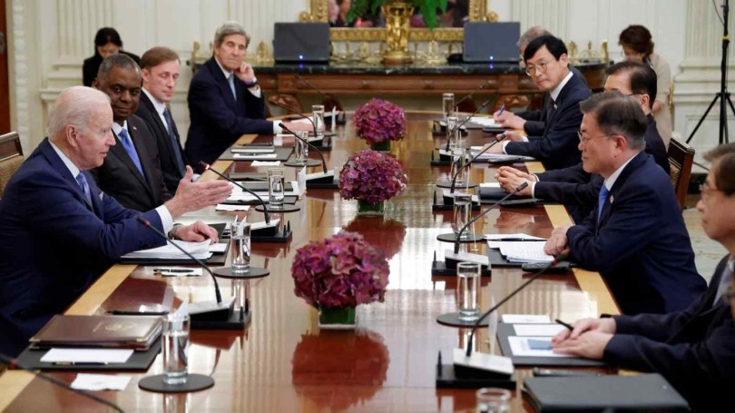 Phát biểu trong cuộc họp báo sau cuộc hội đàm, ông Biden và ông Moon nhấn mạnh mối quan hệ an ninh và kinh tế gắn kết giữa 2 nước, bao gồm cách tiếp cận chung đối với Triều Tiên. Tổng thống Biden nhấn mạnh Mỹ và Hàn Quốc đều sẵn sàng can dự bằng biện pháp ngoại giao với Triều Tiên để thực hiện các bước đi thực tế nhằm giảm thiểu căng thẳng và hướng tới mục tiêu cuối cùng là phi hạt nhân hóa hoàn toàn bán đảo Triều Tiên.
