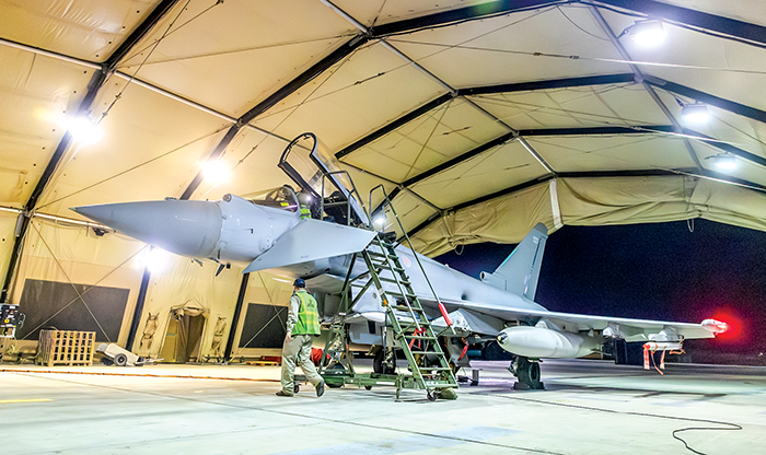 Tiêm kích RAF Typhoon của Anh trở lại căn cứ ở Síp sau khi cùng Mỹ tấn công các mục tiêu Houthi ở Yemen. Ảnh: UK Ministry of Defence