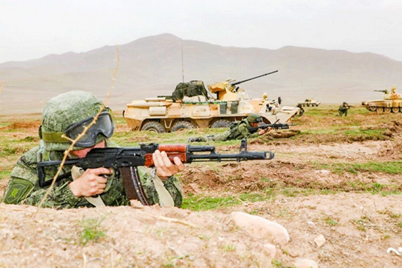 Binh sĩ Nga đóng tại Tajikistan tham gia tập trận. Ảnh: Russian Ministry Of Defense
