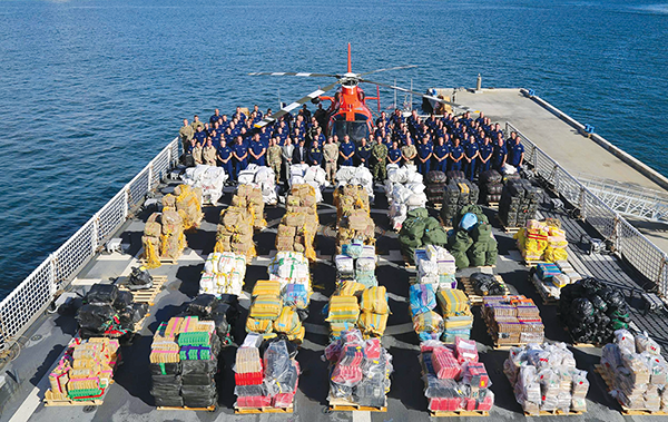 Lực lượng Bảo vệ Bờ biển Mỹ và lượng cocaine tịch thu trong một đợt truy quét. Ảnh: U.S. Coast Guard