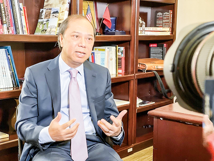 Trao đổi với phóng viên TTXVN tại Washington, Đại sứ Việt Nam tại Mỹ Nguyễn Quốc Dũng (ảnh) đánh giá năm 2023 đánh dấu nhiều bước tiến quan trọng trong quan hệ đối tác giữa Việt Nam và Mỹ. Cụ thể, quan hệ hai bên đã có những phát triển mạnh mẽ, toàn diện trên mọi lĩnh vực. Trong đó, bước phát triển nổi bật và có ý nghĩa bao trùm là việc Việt Nam và Mỹ nhất trí nâng cấp quan hệ hai nước lên Quan hệ Đối tác chiến lược toàn diện vì hòa bình, hợp tác, phát triển bền vững. Việc nâng cấp này tạo xung lực mới và hành lang rộng mở để thúc đẩy hơn nữa hợp tác giữa hai bên trong thời gian tới.