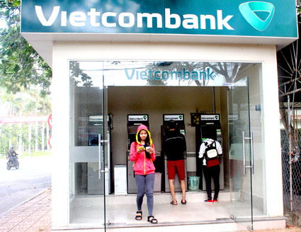 Khách hàng rút tiền tại ATM Vietcombank. Ảnh: T.H