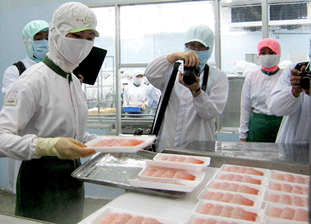 Không chỉ chú trọng thu hút nhà đầu tư mới, TP Cần Thơ còn tạo điều kiện thuận lợi để các DN đang hoạt động phát triển lâu dài, bền vững. Trong ảnh: Tham quan dây chuyền chế biến tôm tại Công ty TNHH Thực phẩm Thủy sản Nam Hải, KCN Trà Nóc.