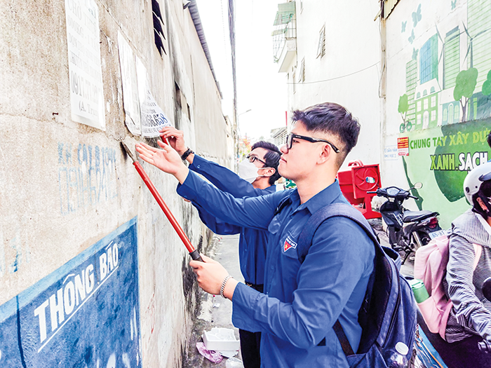 ĐVTN phường An Phú xóa quảng cáo trái quy định.