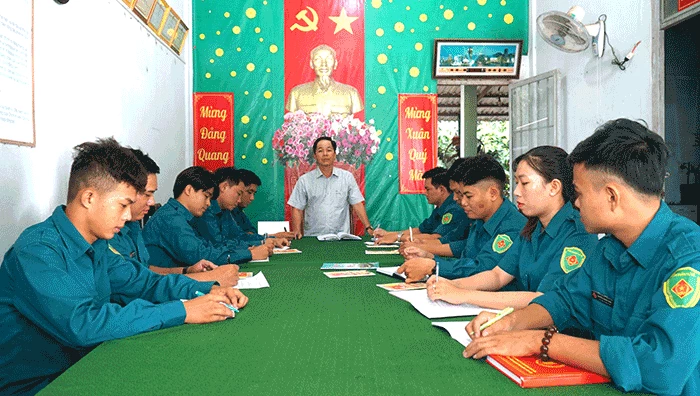 Trong kỳ họp lệ, các chi bộ ở xã Thạnh Tiến quan tâm kiểm tra việc tu dưỡng đạo đức, lối sống, “tự soi”, “tự sửa” của đảng viên. Trong ảnh: Chi bộ Quân sự xã họp lệ tháng 2-2024.