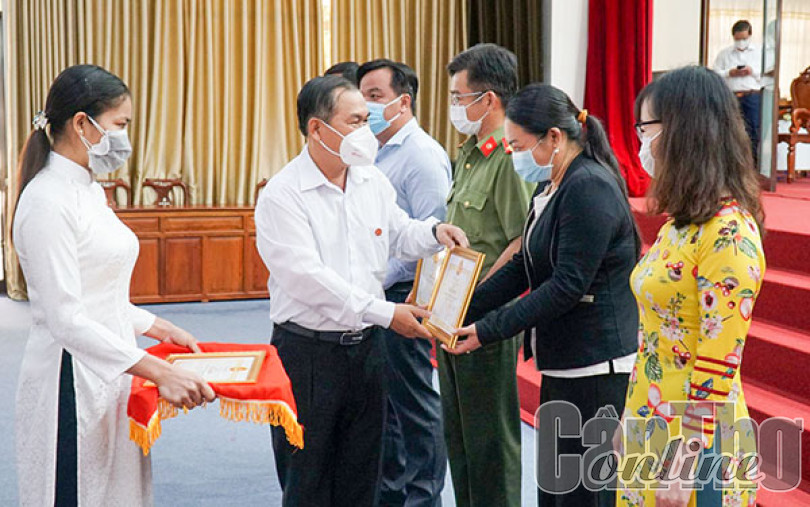 Lãnh đạo UBKT Thành ủy trao Giấy khen cho các tập thể có thành tích xuất sắc trong công tác KT, GS năm 2021.Ảnh: ANH DŨNG