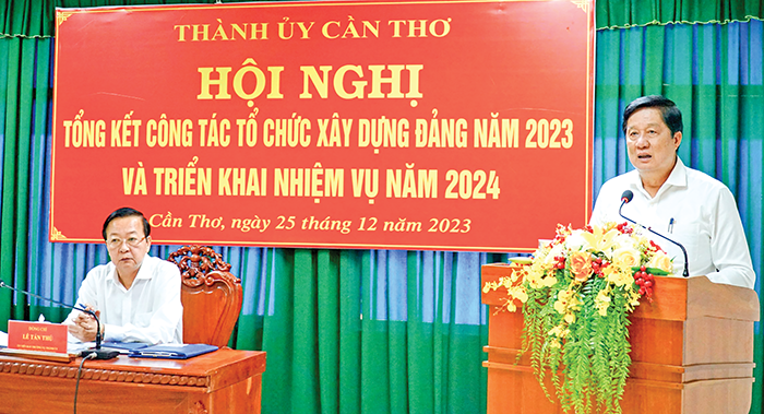 Phát biểu kết luận và chỉ đạo tại hội nghị, đồng chí Phạm Văn Hiểu lưu ý: Năm 2024, cấp ủy và ban tổ chức cấp ủy các cấp thành phố triển khai, thực hiện tốt công tác tổ chức xây dựng Đảng theo chương trình, kế hoạch công tác của Ban Tổ chức Trung ương và Nghị quyết nhiệm vụ năm 2024 của Thành ủy. Tiếp tục chỉ đạo kiên quyết, kiên trì thực hiện hiệu quả các nghị quyết, kết luận của Trung ương Đảng về công tác xây dựng, chỉnh đốn Đảng và hệ thống chính trị. Chú trọng đổi mới, sắp xếp tổ chức bộ máy của hệ thống chính trị tinh gọn, hoạt động hiệu lực, hiệu quả. Tổ chức triển khai thực hiện nghiêm túc, hiệu quả Kế hoạch của BTV Thành ủy về quản lý, sử dụng biên chế TP Cần Thơ giai đoạn 2024-2026. Đồng chí yêu cầu cấp ủy và ban tổ chức các cấp ủy đảng thành phố chú trọng nâng cao hiệu quả công tác cán bộ, trọng tâm là công tác quy hoạch, luân chuyển, đào tạo, bồi dưỡng cán bộ, đảm bảo đồng bộ, liên thông giữa các cấp, cơ quan, tổ chức trong hệ thống chính trị, đáp ứng yêu cầu nhân sự lãnh đạo, quản lý các cấp cho nhiệm kỳ tiếp theo. Tăng cường công tác kiểm tra, giám sát, kiểm soát quyền lực trong công tác cán bộ…