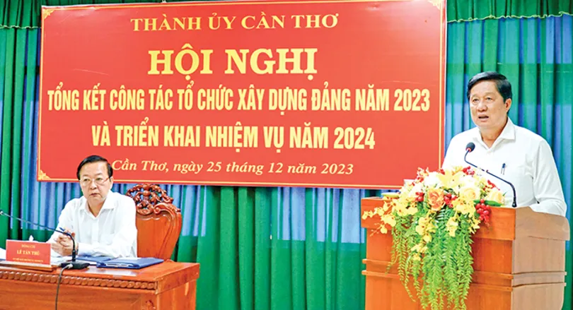 (CT) - Sáng 25-12, Ban Thường vụ (BTV) Thành ủy Cần Thơ tổ chức hội nghị tổng kết công tác tổ chức xây dựng Đảng năm 2023, triển khai nhiệm vụ năm 2024. Đồng chí Phạm Văn Hiểu, Phó Bí thư Thường trực Thành ủy, Chủ tịch HĐND thành phố và đồng chí Lê Tấn Thủ, Ủy viên BTV, Trưởng Ban Tổ chức Thành ủy, chủ trì hội nghị.