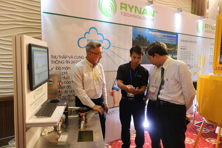 Đại diện Công ty Rynan Agrifoods giới thiệu thiết bị đo độ mặn thông minh