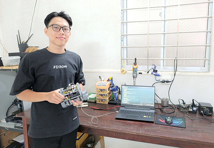 Khưu Triều Minh Khang, sinh viên Đại học Cần Thơ đã thực hiện nhiều sản phẩm để tham gia cuộc thi Sáng tạo thanh thiếu niên, nhi đồng các cấp.