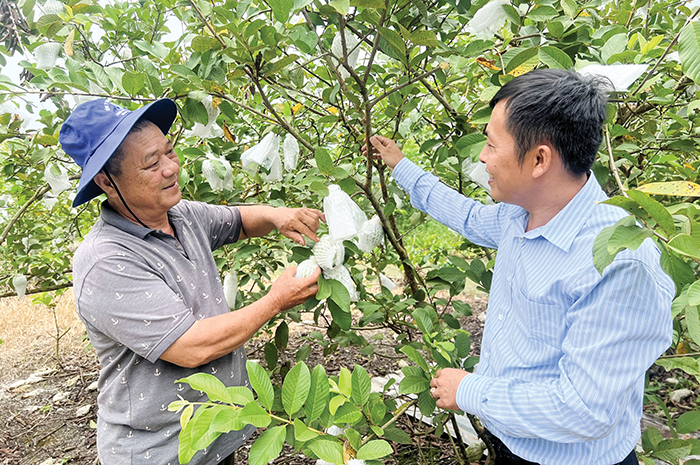 Chia sẻ quá trình chuyển đổi cây trồng, ông Thái Ngọc Tài nói: “Sau nhiều năm canh tác, vườn xoài ngày càng già cỗi, năng suất kém, giá bán lên xuống thất thường, nên thu nhập không ổn định. Năm 2014, tôi quyết định chuyển đổi toàn bộ vườn xoài sang trồng cây ổi nữ hoàng, bởi đây là loại trái cây đang được thị trường ưa chuộng và có khả năng cho trái quanh năm. Ban đầu tôi chưa có kinh nghiệm, nên vụ đầu tiên, năng suất cũng như chất lượng trái chưa đạt hiệu quả như mong muốn. Tôi tự rút kinh nghiệm cho vụ tiếp theo và đi học hỏi thêm kỹ thuật canh tác mới từ những nhà vườn trồng ổi thành công trong và ngoài địa phương. Nhờ đó, tôi dần dần nắm bắt được kỹ thuật canh tác và chỉ sau 2 năm, vườn ổi sinh trưởng tốt, năng suất khá cao”. Gắn bó với cây ổi nữ hoàng trên 10 năm, vườn ổi 2,5ha đã mang lại nguồn thu nhập trung bình từ 300 triệu đồng/năm cho gia đình ông Tài.