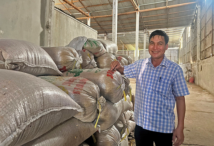 Không chỉ dừng lại đó, năm 2023, anh Lợi còn chủ động mở hướng đi mới, thử nghiệm trồng lúa theo hướng hữu cơ, với tổng diện tích 10ha, kết hợp trồng nấm rơm sạch và tận dụng nguồn phụ phẩm từ việc trồng nấm rơm để sản xuất phân hữu cơ, phục vụ nhu cầu trồng lúa sạch. Ước tính trong năm 2023, anh Lợi đã sản xuất thử nghiệm và đưa vào sử dụng hơn 200 tấn phân hữu cơ từ phụ phẩm nông nghiệp, góp phần mở hướng canh tác nông nghiệp theo hướng tuần hoàn, thích ứng với biến đổi khí hậu cũng như xu thế mới của thị trường.