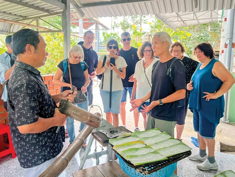 Không chỉ tại chợ nổi Cái Răng, nhiều sản phẩm OCOP của thành phố còn được phát triển theo hướng du lịch trải nghiệm. Từ một món bánh quê gắn với bữa ăn gia đình, bánh hỏi mặt võng Út Dzách hôm nay đã được "nâng tầm" khi tham gia chương trình OCOP và đạt chứng nhận OCOP 4 sao, trở thành điểm dừng chân hấp dẫn trong các tour du lịch sinh thái miệt vườn.