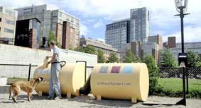 Một công viên tại Massachusetts (Mỹ) vừa trình làng hệ thống có thể dùng phân chó để tạo ra năng lượng cung cấp cho các đèn đường đặt trong công viên. Người nuôi chó chỉ cần dọn “chiến trường” của chó, cho vào túi phân hủy sinh học và bỏ vào một bồn dầu bằng thép ở công viên. Sau đó, chỉ cần xoay tay quay bên trên bồn để vận hành hệ thống xử lý bên trong là có thể tạo ra nguồn nhiên liệu sinh học cung cấp cho các đèn khí chiếu sáng trong công viên (ảnh).