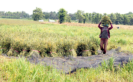 Nắng nóng gay gắt, nông dân trồng mè khó phòng trừ cỏ dại