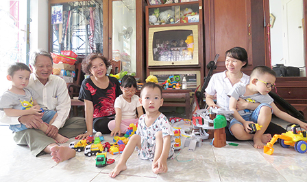 Vợ chồng cô Kim Lan vui chơi cùng con cháu. Ảnh: B. NG