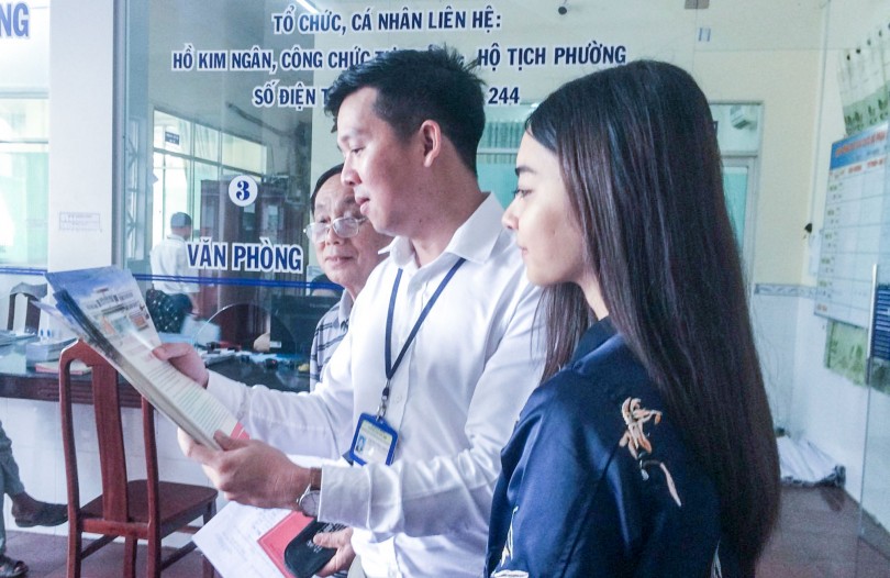Công chức bộ phận một cửa phường hướng dẫn người dân về thủ tục hành chính. Ảnh: ANH DŨNG
