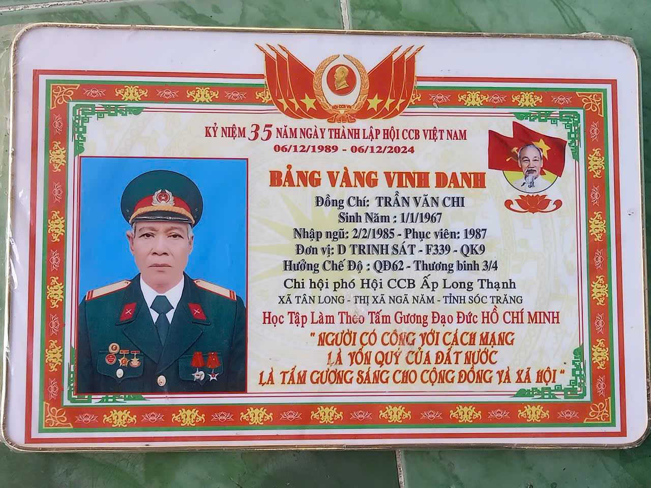 Ông Trần Văn Chi, Chi hội Phó Cựu chiến binh ấp Long Thành, là thương binh 3/4, từng tham gia chiến đấu và phục viên năm 1987. Trở về đời thường với một chân bị mất, song ông vẫn giữ vững phẩm chất “Bộ đội Cụ Hồ”, không khuất phục khó khăn, luôn nêu gương sáng trong cuộc sống và công tác. Với tinh thần vượt khó, đồng chí đã mạnh dạn xây dựng mô hình nuôi lươn thương phẩm, mỗi năm cho lợi nhuận trên 250 triệu đồng, trở thành điển hình trong phong trào “Hội viên Cựu chiến binh giúp nhau phát triển kinh tế, giảm nghèo bền vững”.