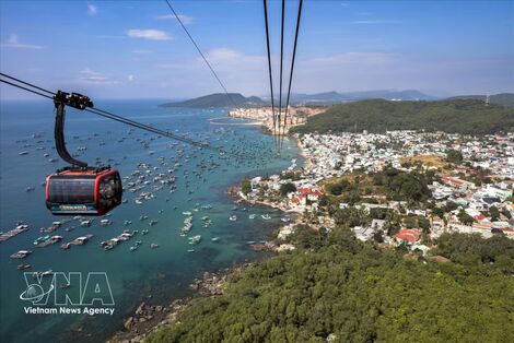 The Hon Thom cable car system in Phu Quoc, An Giang province, is the world's longest 3-wire cable car. (Photo: VNA)
