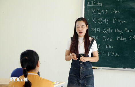 A teacher guides students in Korean pronunciation (Photo: VNA)