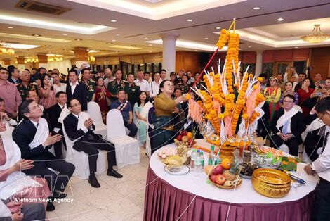 Within the framework of the event, delegates joined the traditional wrist-tying ceremony to wish for peace, happiness and good fortune, and took part in a banquet and cultural exchange imbued with the Vietnam–Laos friendship.