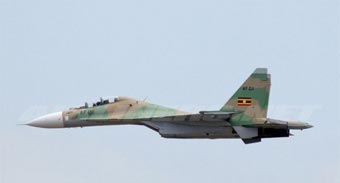 Hợp đồng mua vũ khí hồi đầu năm 2012 với tập đoàn Nga Rosoboronexport mang về cho Uganda 6 chiến đấu cơ Sukhoi Su-30MK2. Ảnh: Russiadefence.com |
