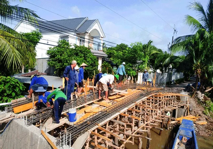 Nhờ giám sát chặt chẽ, việc thi công các công trình trên địa bàn xã Thạnh Quới những năm qua không xảy ra tiêu cực, vi phạm. Trong ảnh: Thi công cầu Dãy 2 ấp Quy Lân 6.