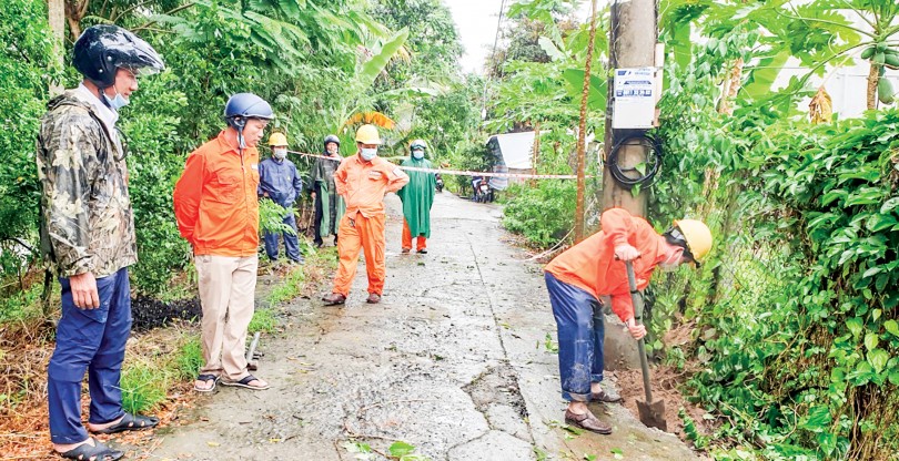Cán bộ công nhân viên Điện lực Cái Răng, thuộc PC Cần Thơ xử lý sự cố về điện trong giai đoạn TP Cần Thơ thực hiện giãn cách xã hội.