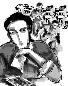 ... 8 giờ tối. Trong bộ đồ lính, Khánh đóng giả lính cần vụ của thiếu úy Độ. Hai thầy trò đi uống cà phê.