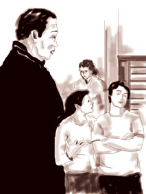 Nghe tới đó, Nhàn vụt đứng lên bỏ ra sau, vẻ mặt lạnh lùng. Ông Văn nhìn thẳng mặt Quan: