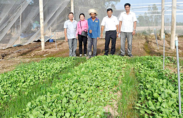 Lãnh đạo phường tham quan mô hình trồng rau sạch ở khu vực Tràng Thọ B.