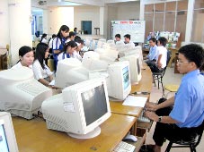 Sinh viên Trường Đại học An Giang tìm hiểu thông tin trong thư viện của trường.