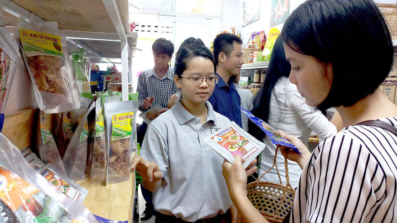 Người tiêu dùng tìm hiểu về sản phẩm khô cá tra sấy ăn liền của Công ty TNHH MTV Thương mại Minh Đức Thành, quận Thốt Nốt, TP Cần Thơ.