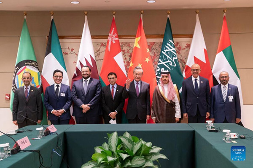 Các ngoại trưởng đến từ Trung Quốc và Hội đồng hợp tác vùng Vịnh gặp nhau bên lề cuộc họp Đại Hội đồng Liên Hiệp Quốc hồi tháng 9-2022 tại New York (Mỹ) . Ảnh: THX