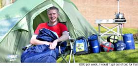 Người có được may mắn đó là Phil Latam ở Devon (Anh - ảnh) khi anh vừa được trúng tuyển làm nhân viên thử túi ngủ. Với mức lương 600 bảng (17,2 triệu đồng)/tuần, công việc của anh chỉ đơn giản là “khò khò”. Anh chàng 27 tuổi này sẽ ngủ thử trong rất nhiều loại túi ngủ khác nhau trong lều và báo cáo cho nhà sản xuất Halfords về sự thoải mái cũng như độ ấm của chúng.