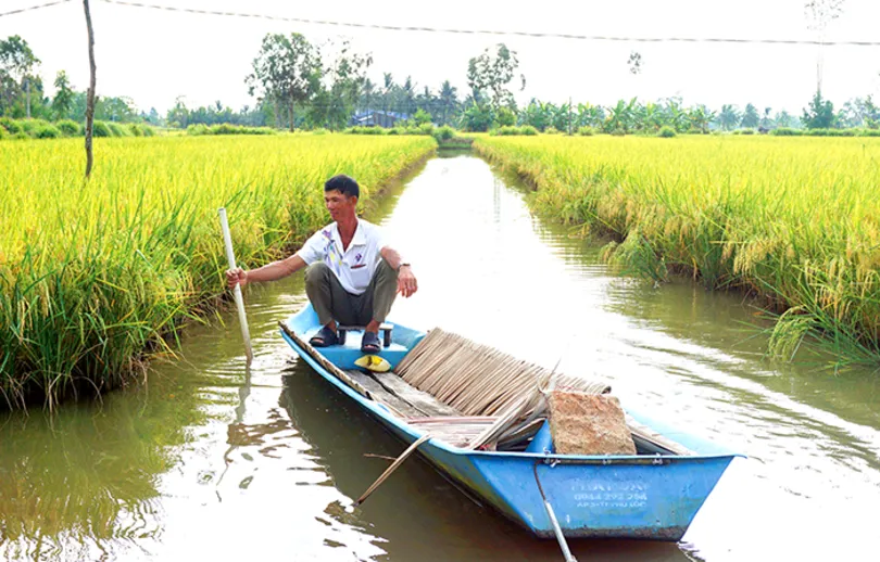 Trồng lúa ST trên vuông tôm, nông dân yên tâm về giá bán và lợi nhuận.