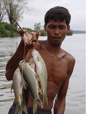 Nông dân Campuchia đánh bắt cá trên sông Sesan. Ảnh: SUTHEP |