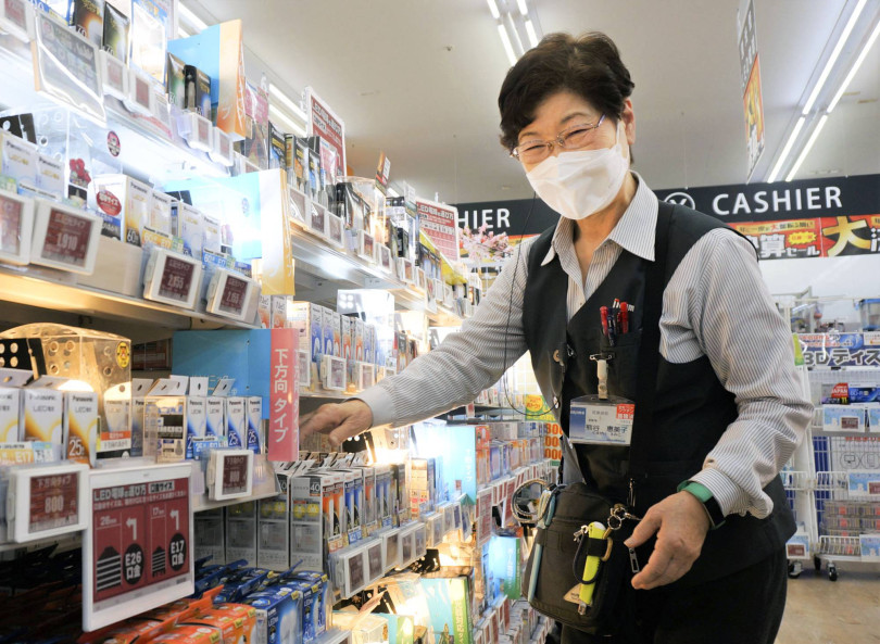 Cụ Emiko Kumagai, 80 tuổi, trong giờ làm việc tại Công ty bán lẻ điện tử Nojima. Ảnh: KYODO
