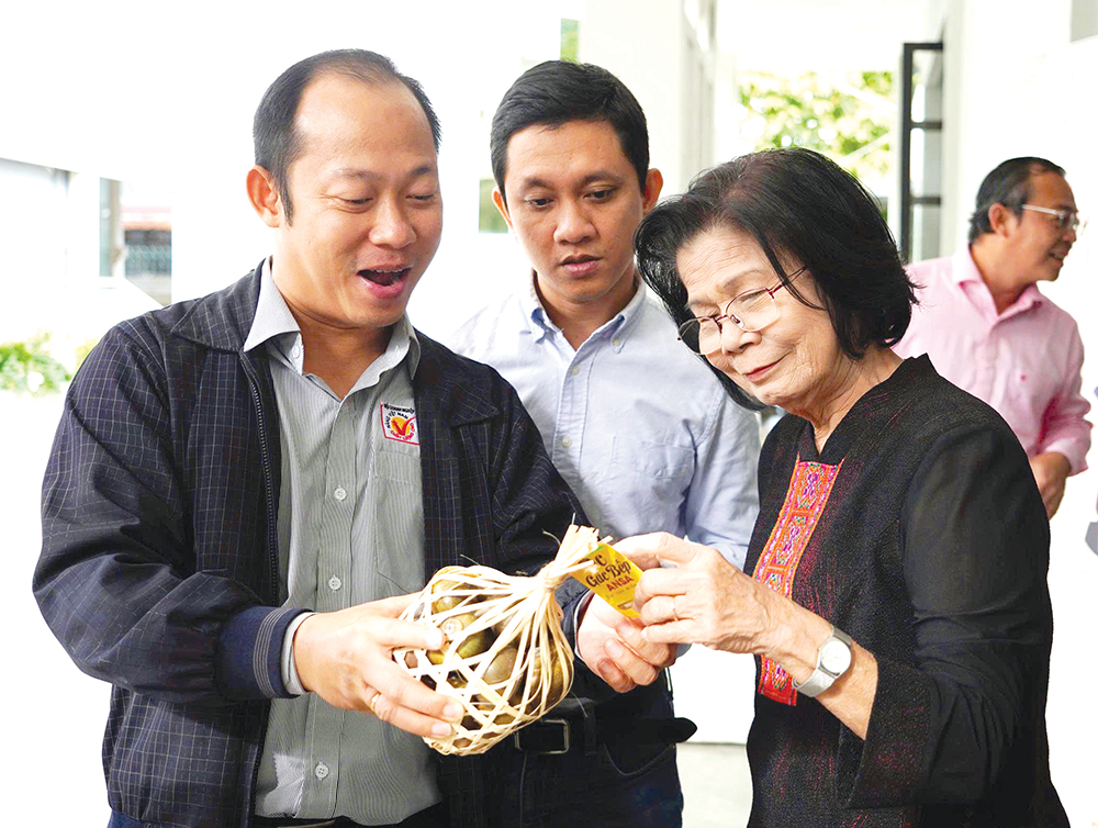 Các đại biểu tìm hiểu thông tin trên sản phẩm ốc gác bếp trưng bày tại hội thảo “Rộn rịp chuẩn bị mùa kinh doanh Tết và mở đầu 2026”.