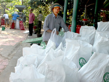 Lúa giống được vô bao chuẩn bị đem đi tiêu thụ tại Hợp tác xã sản xuất giống và dịch vụ nông nghiệp Tân Bình ở quận Ô Môn, TP Cần Thơ. |