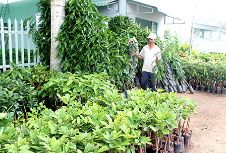Hoạt động sản xuất kinh doanh cây giống tại Cơ sở cây giống và hoa kiểng Tuấn Kiệt ở xã Vĩnh Thành, huyện Chợ Lách, tỉnh Bến Tre.