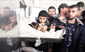 Người Palestine bên thi thể thủ lĩnh Hamas al-Jabari, thiệt mạng trong cuộc không kích của Israel ngày 14-11.
