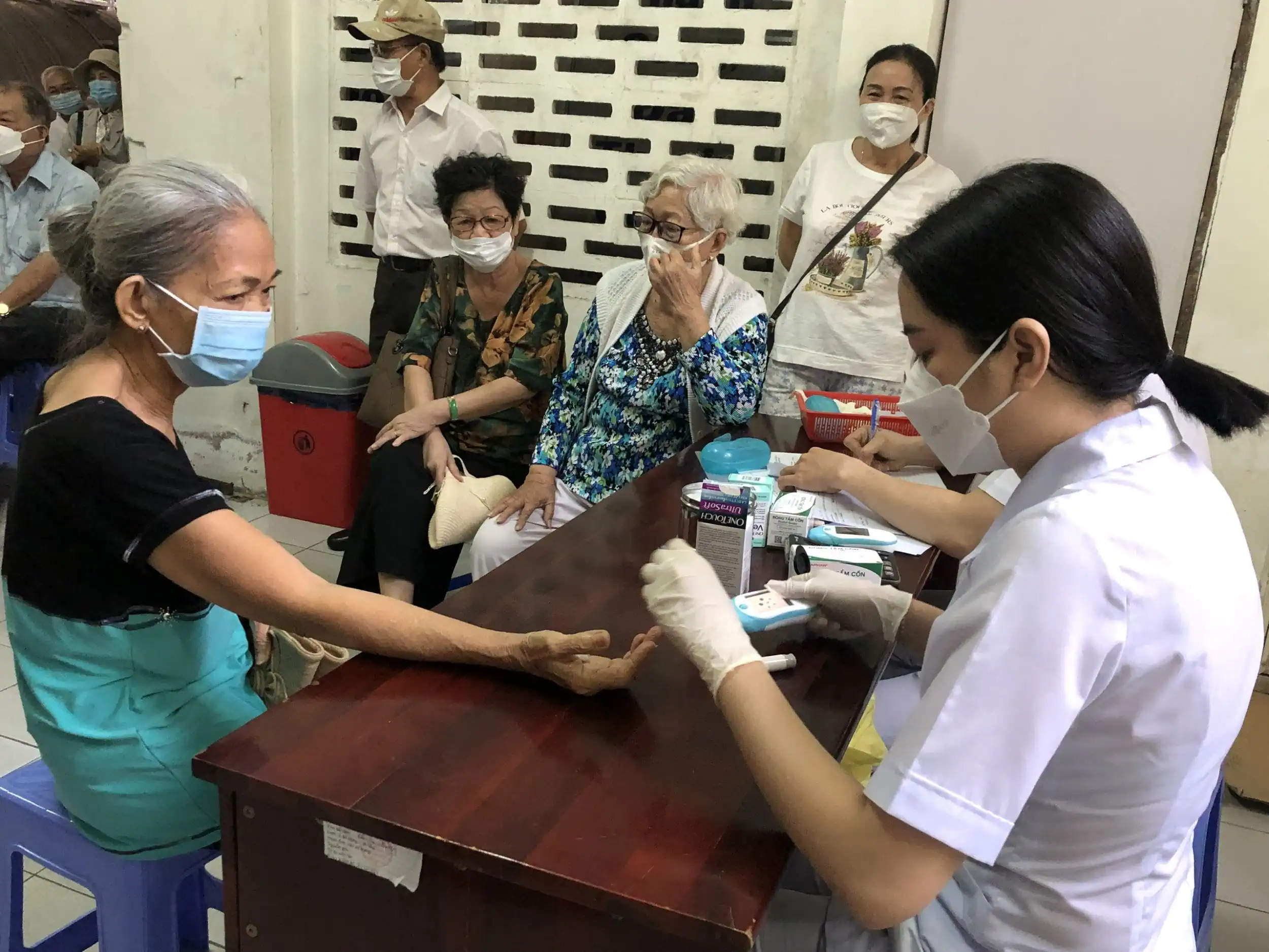 Thường xuyên dùng đồ uống có đường làm tăng nguy cơ mắc đái tháo đường tuýp 2. Trong ảnh: Thử đường huyết tại Bệnh viện Tim mạch TP Cần Thơ.