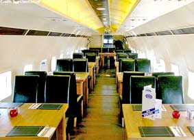 Lần đầu tiên tại Anh, một nhà hàng vừa được mở bên trong máy bay tại phi trường Coventry (ảnh). Nhà hàng với chức năng đầy đủ của quầy bar trên máy bay, hành khách có thể thưởng thức các món ăn thường được phục vụ trên các chuyến bay cùng với bia và rượu vang với giá khá mềm 10-15 bảng (336.000 - 505.000 đồng)/phần.