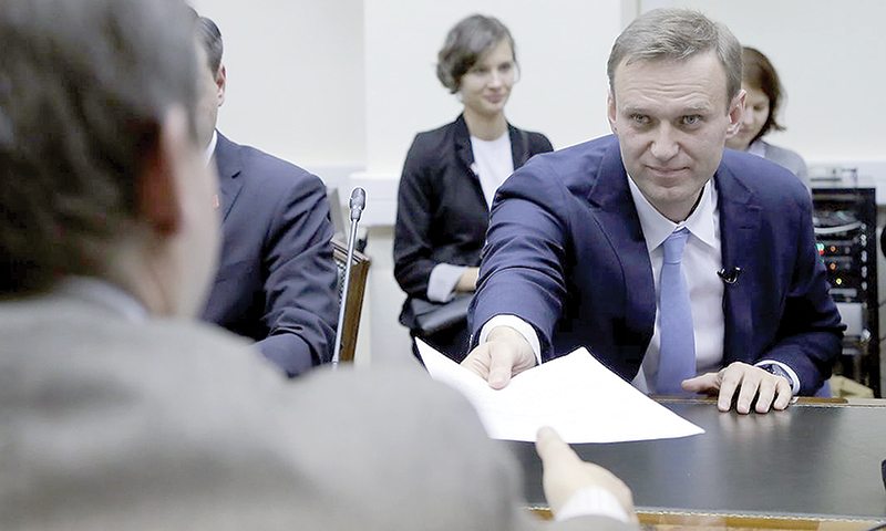 Ông Navalny trình hồ sơ cho Ủy ban bầu cử trung ương. Ảnh: EPA
