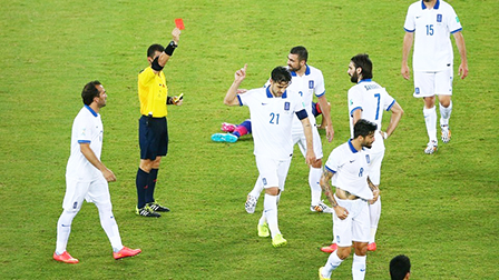 Katsour (21-Hy Lạp) bị thẻ đỏ phải rời sân.