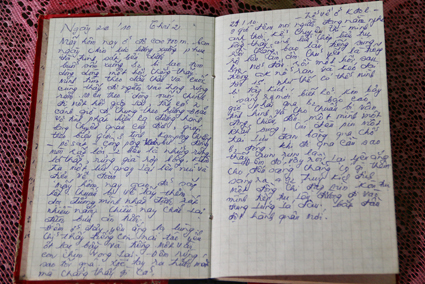 Một trang trong quyển nhật ký của liệt sĩ Lê Văn. Ảnh: DUY KHÔI |