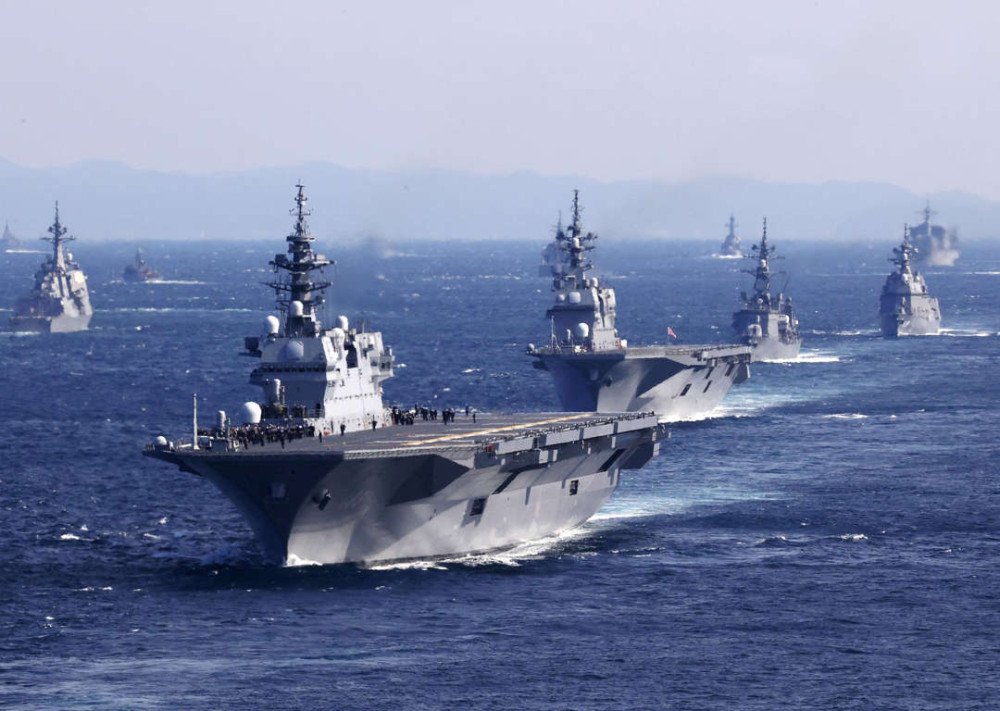 Tàu khu trục Izumo của Nhật Bản dẫn đầu trong cuộc duyệt hạm đội quốc tế mà nước này tổ chức ngày 6-11. Ảnh: Reuters