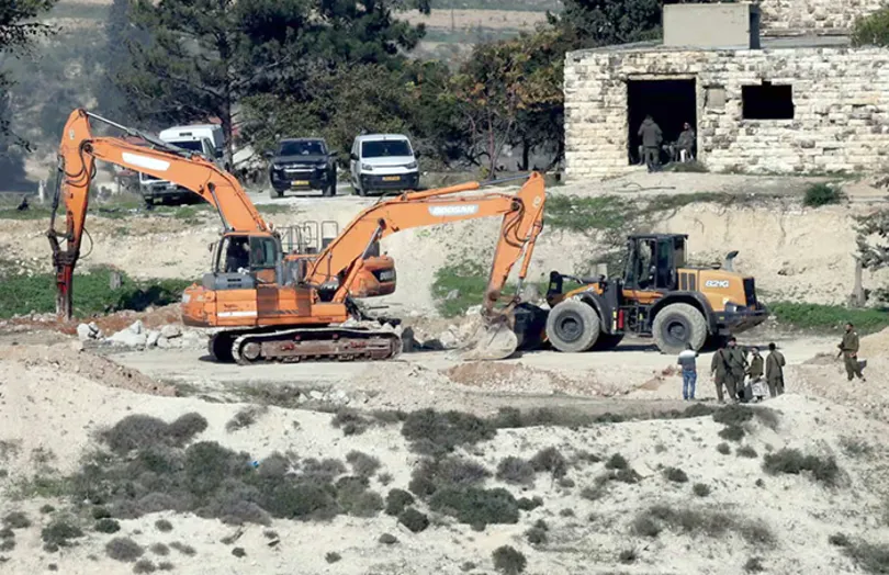 Máy ủi của Israel san gạt đất tại một khu định cư thuộc Bờ Tây. Ảnh: EPA